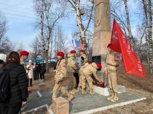 Поселок Шкотово не остался в стороне от этой традиции. Сегодня у памятного знака, посвященного Шкотовскому пехотному училищу по ул. Гарнизонной прошел митинг, подготовленный совместно с библиотекой (филиалом) пгт Шкотово. Мероприятие собрало вместе жителей поселка, представителей администрации, ветеранов, военнослужащих и молодежь.
