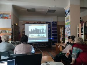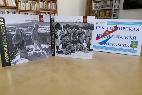 В рамках второго этапа краевого проекта «Как пройти в библиотеку!?!» библиотека (филиал) пгт Шкотово представила презентацию исторического альбома к 55-летию Даманских событий в 2-х книгах: «Стали в бою героями» и «Горячий лед Уссури», изданных в рамках Губернаторской издательской программы. На мероприятии присутствовали члены из общества инвалидов пгт Шкотово.