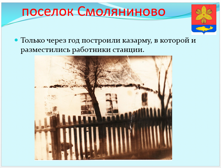 На этой «угольной» станции, где располагалось большое паровозное депо, и начал работать в конце 1929 года дежурным станции выпускник техшколы Николай Смолянинов. Вскоре его назначали начальником разъезда 42-ая верста. В то время здесь не было никакой инфраструктуры. Первой «квартирой» стал вагон. Только через год построили казарму, в которой и разместились работники станции.