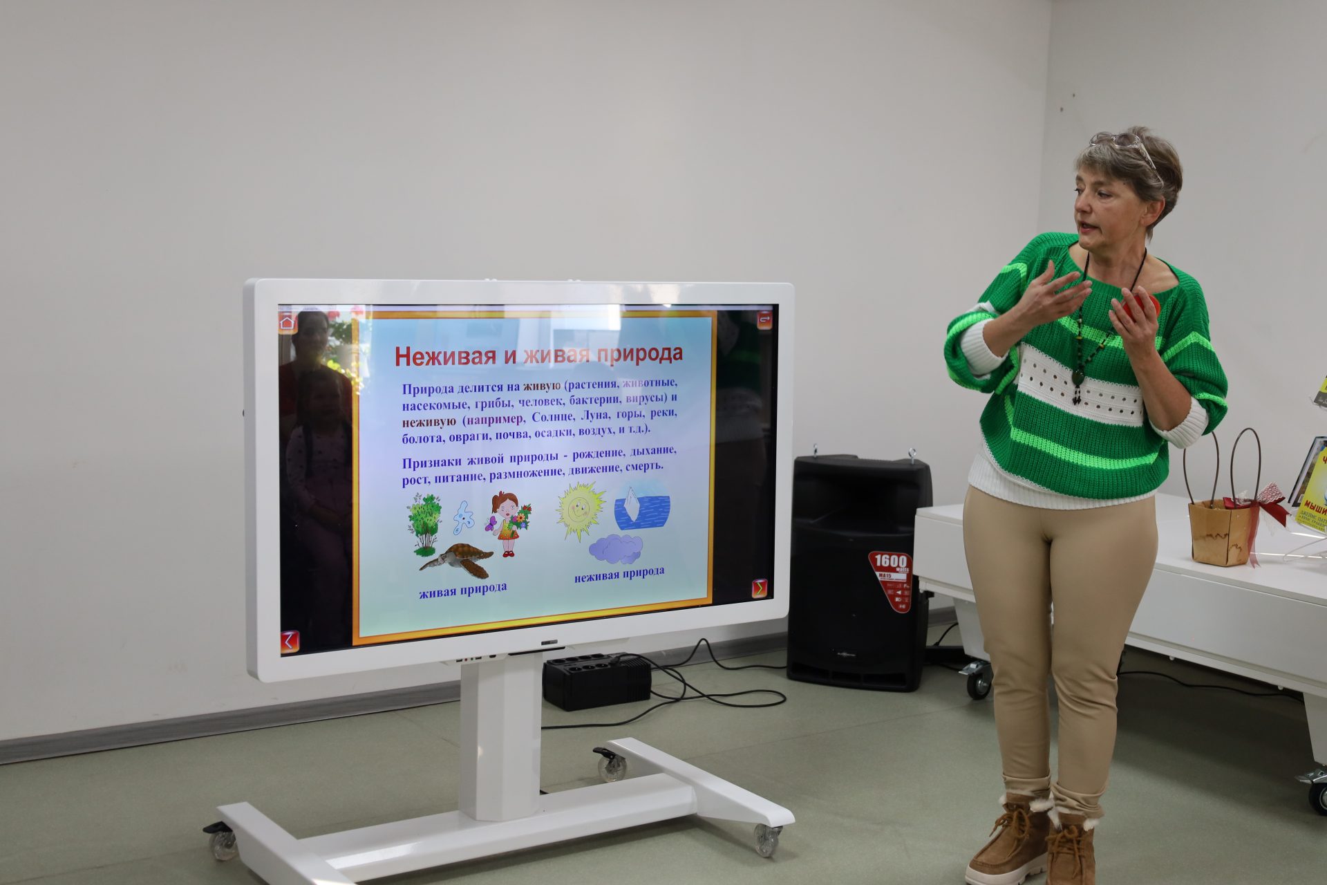 Интерактивная игра «Окружающий мир» — средство ознакомления с окружающим миром, расширения экологических представлений. Предварительно с детьми прошла беседа о свойствах объектов окружающего мира. Команды узнали о природных объектах, о предметах, созданных руками человека, о том, что природа бывает живой и неживой.