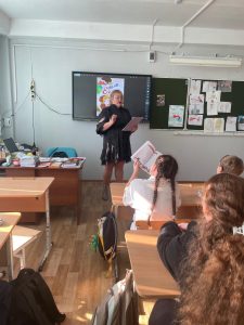 Также ребята узнали, что история изначально создавалась как пьеса, святочная комедия в духе фольклорного театра 19 века по мотивам сказки «По щучьему велению». Важнейшая особенность данного произведения-его насыщенность произведениями традиционного фольклора приморских переселенцев.