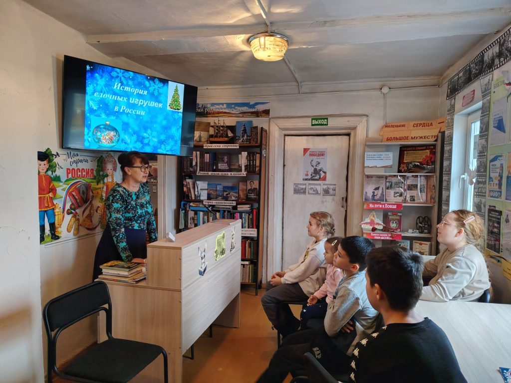 В библиотеке (филиал) с. Стеклянуха 20 декабря прошёл час истории «Как появились новогодние игрушки». Из презентации «История елочных игрушек в России» дети узнали, откуда к нам пришёл обычай украшать новогоднюю ёлку, как исторические события в стране диктовали моду на новогодние игрушки.