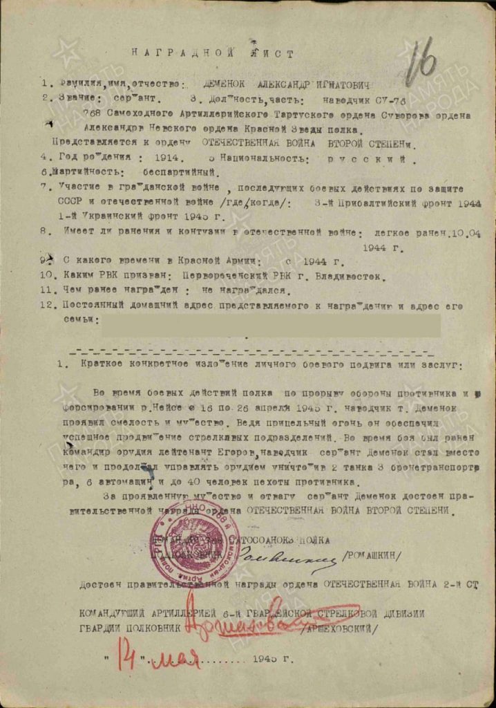 Деменок Александр Игнатьевич родился 4 мая 1914 года в многодетной семье (10 детей). Семья Деменок проживала в с. Майхе (ныне п. Штыково).